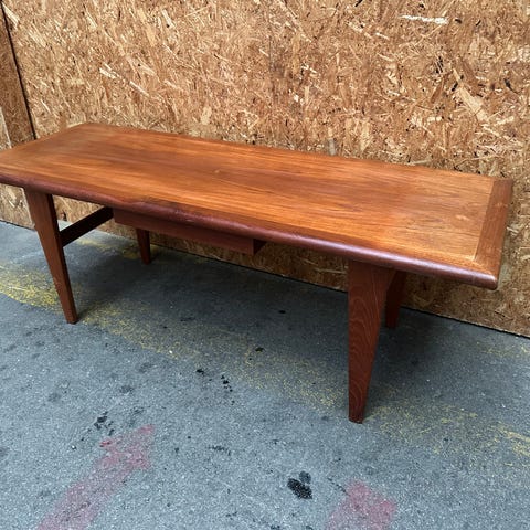 Sofabord, Ved ikke, teaktræ, b: 55 l: 150 h: 53, Fint sofabord i teaktræ med skuffer - der er brugsspor på bordpladen og bordet har være linet nederst inderst - ikke noget man ser -bordet står i Hedehusene