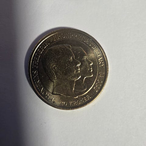 Danmark 10 kroner mindemønt i sølvfarvet metal. Mønten viser portræt på den ene side og kvindeportræt på den anden side. Leveres i rund kapsel, som beskytter mønten under opbevaring og håndtering. Velegnet til møntsamlere eller som supplement til samling af danske mønter.