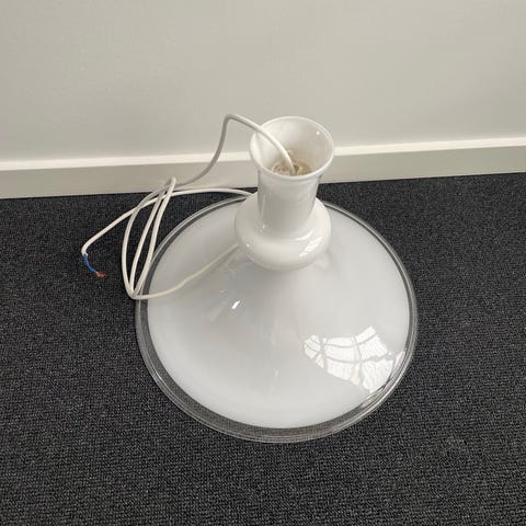 Den giver et fantastisk hyggeligt lys både nedad, og også gennem det flotte mørke glas hvis man anvender en klar pære.