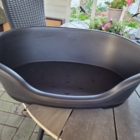 Beeztees kundekurv: Mål udvendig: 64x82 cm/indvendig:37x53cm. Vægt 4 kg. Nypris 1000kr (Plantorama), kun brugt som hovedstøtte, vores hund ville ikke bruge den! Bunden er med Memory Foam.