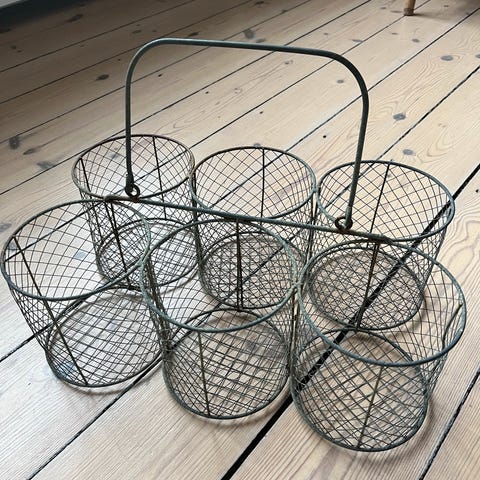 Skøn flettet vinkurv mm i stål, Flettet stål, Super skønne små flettede stål kurve med hank samt flot dekorativ vinkurv