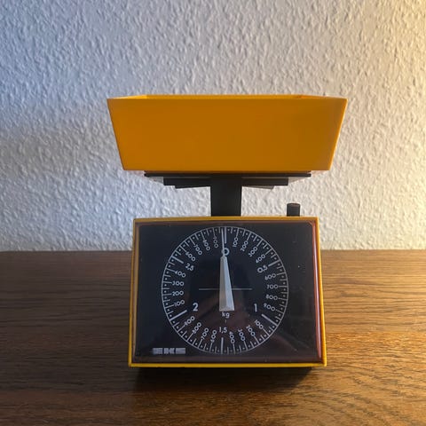 Vægt, Eks, Retro køkkenvægt EKS, design Bengt EK. I en smuk orange- rød farve, flot stand og fuldt funktionsdygtig.