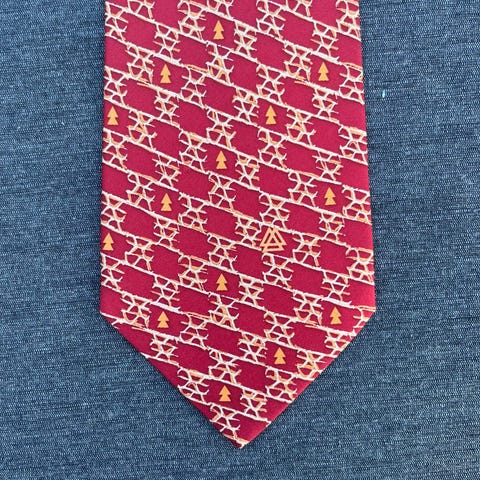 Marja Kurki slips til mand i 100 % silke. Slipsen er i blå nuancer med lilla og turkis mønster. Foret er mørkeblåt. Velegnet til formelle og semi-formelle anledninger.