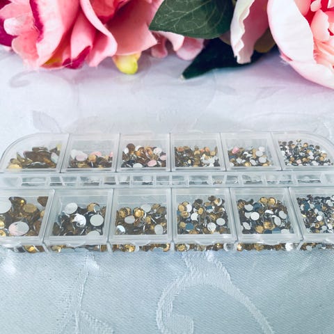 8 pakker flotte guld Rhinesten - skulle ha været brugt til min datters menukort til konfirmation, men hun valgte nogle i sølv istedet for.