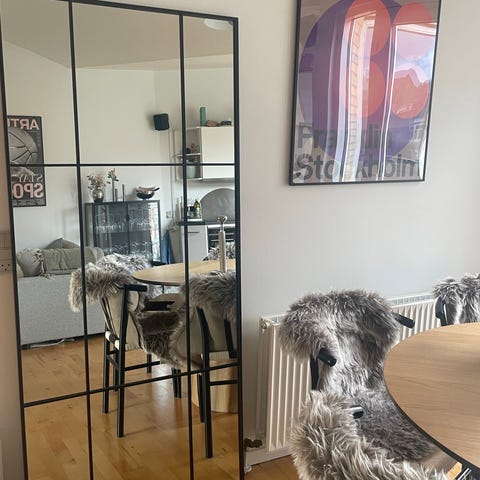 Med sin høje kvalitet og stilrene design skaber spejlet både dybde og lys i rummet, samtidig med at det fungerer som et dekorativt statement piece.