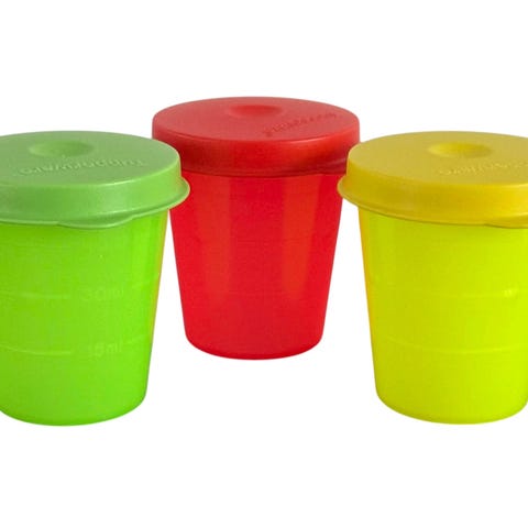De små praktiske bægre til opbevaring og transport af dressing, snacks og andre små lækkerier.