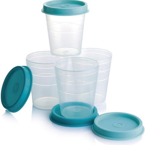 De gennemsigtige bægre er, med deres tætte låg, ideele til transport. Bægrene kan stables og optager ikke meget plads.