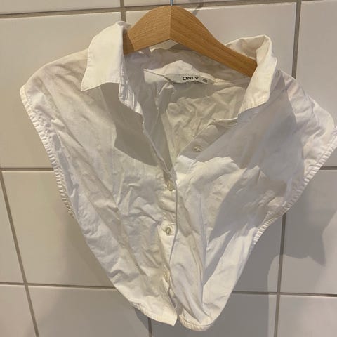 Fin og feminin top med flotte blonde- og flæsedetaljer ved kraven – perfekt til at have under en bluse eller strik, så kraven kan titte frem ✨