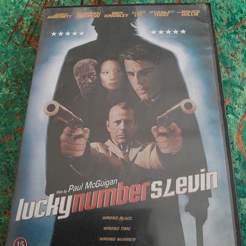 Lucky Number Slevin, instruktør Paul McGuigan, DVD, thriller, Gansterfilm. Der sker meget og den perfekte film for folk, der kanlid både action og hjernegymnastik.