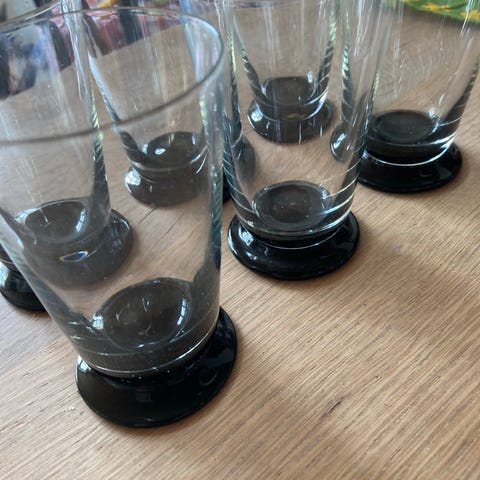 6 stk Holmegaard vandglas med slebet mønster og mørk fod