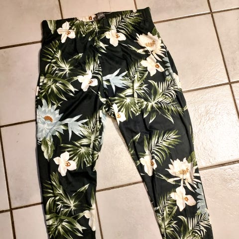 Bløde leggings i god kvalitet i "army"-mønster fra Masai. Grønne med sort mønster. Materialet er polyester og elastan. De måler 68 cm i livet. Fra linning til fod måler de 83 cm.