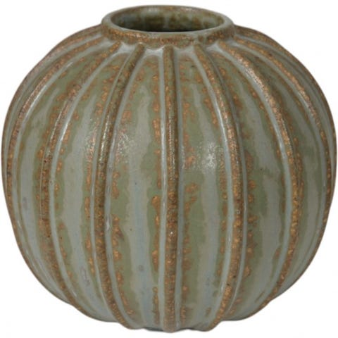 Arne Bang Stentøj blå vase med riflet design H: 12 X Ø: 8 cm. Markeret i bunden med AB. Den mangler nummer, men det er 117.