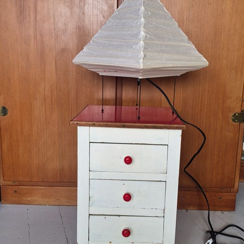 Vintage natborde i træ med intarsia og 3 skuffer