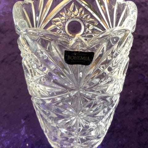 Bohemia Cut Crystal vase, Amber Floral vase, Bohemia Cut Crystal vase