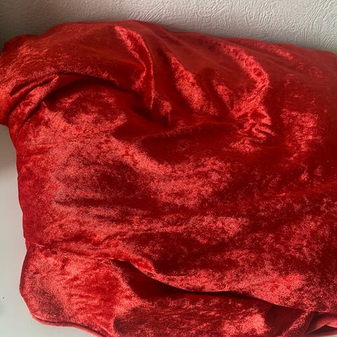 Fin lilla dug med frynser. Ca. 129x260 cm (u/frynser).