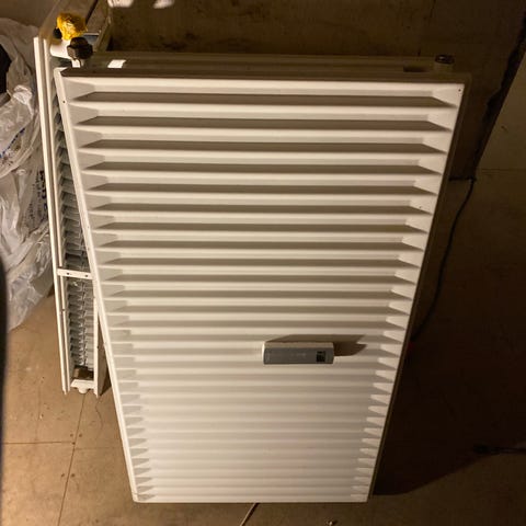 Kvikk radiator panelhøjseng i hvidlakeret metal. Radiatoren har lodrette ribber på forsiden og tilslutning i bunden. Egnet til brug i rum med vandbåret varmesystem, f.eks. stue, værelse eller gang. Leveres med hjørnebeskyttere monteret på panelet. Mål og effekt er angivet på typeskiltet på bagsiden.