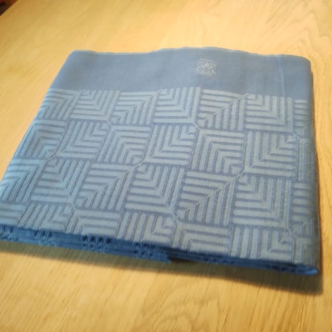 Ubrugt Georg Jensen damaskdug med tilhørende servietter i rød/pink og orange toner. Dugen og servietterne har et vævet mønster med blomster- og cirkelmotiver. Tekstilet er i klassisk damaskvævning. Aldrig brugt, men vasket en gang. Dugen koster 550 og servietterne 75 kr. stykket. Samlet 1.100 kr.