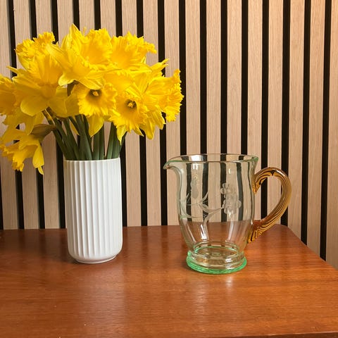 * Denne brune keramikkande i Art Deco-stil er en vintage spritzdekor kaffe/tekande fra 1930'erne - fra Bunzlauer Keramik.