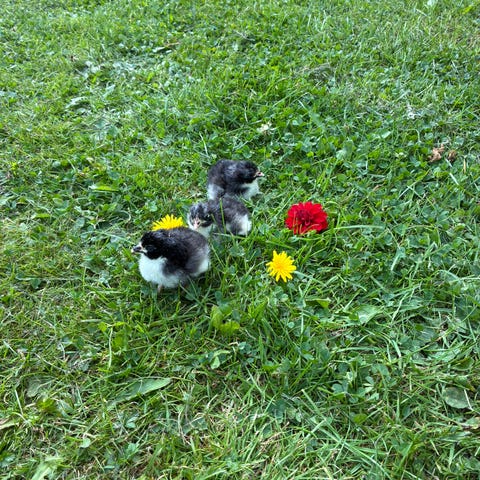 Kyllingerne bliver blå eller splash. De kan ikke kønssorteres. Men det er umagen værd at slagte overskydende haner - ca 1,5 kg slagtevægt.