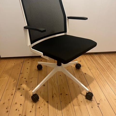 Rød kontorstol med perforeret sæde og ryg for optimal ventilation, monteret på et sort, robust stativ med hjul til nem bevægelse.,Bemærk at mail, chat og beskeder ikke besvares, og varen skal købes på knappen "Gå til varen"