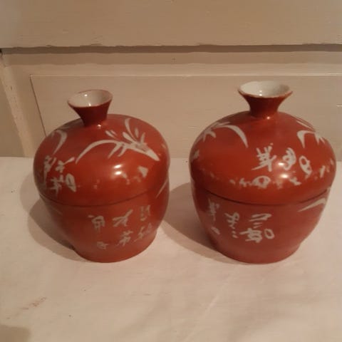 5 5 Blå/ hvide kinesiske Lågkrukker.,,,,🫙🫙