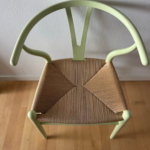 Y stole I fin stand med hynder på, kunne godt bruge en frisk Maling især ved armlæn og evt nyt flet