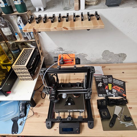 Lækker Prusa MK4 med en masse ekstraudstyr (build plates, nossles, rengøringsudstyr etc.) og et custom lukket case så du kan printe mange materialer. Den har været brugt til prototyping men stået mest stille de sidste mange måneder. Nu skal den ud at lave nye spændende ting hos dig - måske?