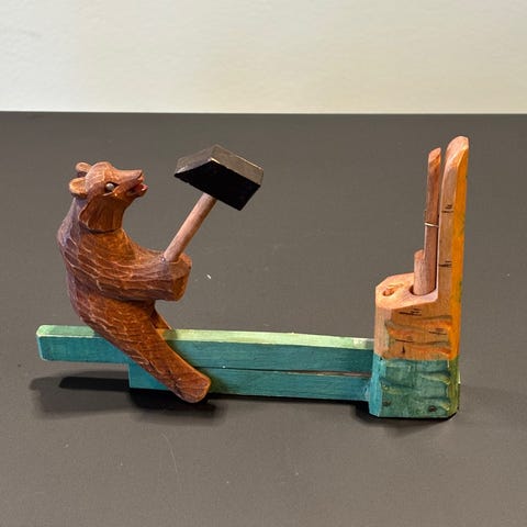 Tre udskårne bjørne fra Rusland med snoretræk sælges samlet for 250,00 kr. De trænger alle til nye snore.