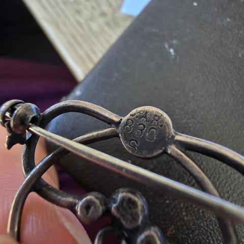 Smukt designet sølvbroche af Jan Aagaard. Mål 2,3 x 7,6 cm.