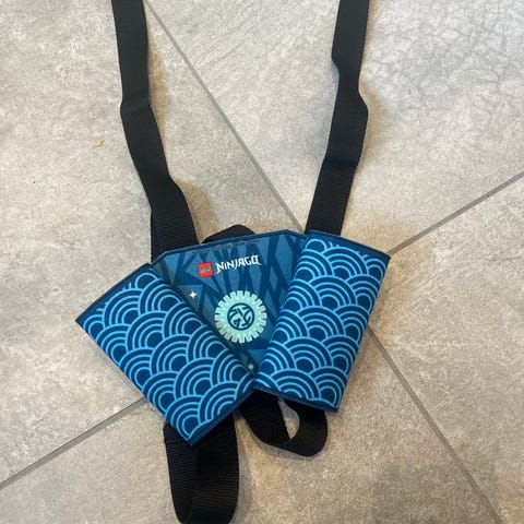LEGO Ninjago sværdskede med skulderrem. Sværdskeden er udformet til leg med Ninjago-tema og bæres over skulderen med justerbar rem. Ydersiden har Ninjago-motiv, og der medfølger et grønt bånd med tryk, som kan bruges som tilbehør til udklædning eller rolleleg. Velegnet til børn, der leger med eller samler på LEGO Ninjago udstyr.