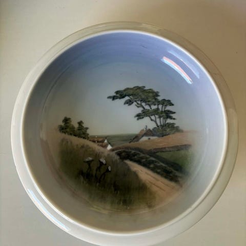 Skål blå/hvid porcelæn med motiv