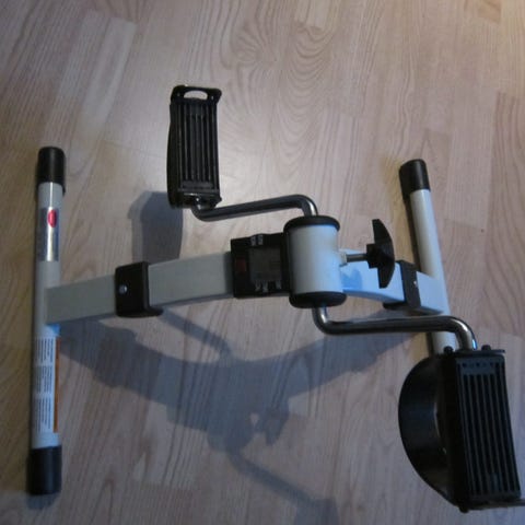Cavix pedaltræner i hvid plast/metal med indbygget digitalt display. Udstyret med justerbar modstand via drejeknap på fronten og pedaler med grå fodstropper for stabilitet under brug. Enheden har bærehåndtag og skridsikre fødder, så den kan anvendes stående på gulv, eksempelvis til træning af ben, eller på bord til træning af arme. Velegnet til let konditions- og genoptræning i hjemmet.