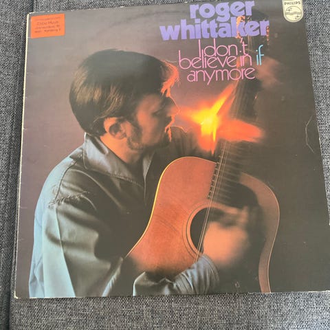 Vinyl LP fra Roger Whittaker med titlen 'In Orbit'. Pladen indeholder flere sange, herunder 'I'm just a country boy', '1944', 'Little finger', og 'Canada is' på side 1 samt 'He ain't heavy… he's my brother', '500 Miles', 'First of May', og 'Lonesome traveller' på side 2. Pladenummeret er 6369 214, og den er udgivet af Philips.