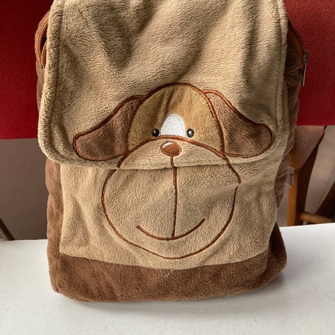 En grøn rygsæk til børn med et dyremotiv på forsiden. Rygsækken har justerbare skulderstropper og flere lynlåslommer, inklusive en frontlomme med et sødt dyremotiv. Der er også sidelommer i mesh til små genstande som vandflasker. Den er 35x30 cm i størrelse.