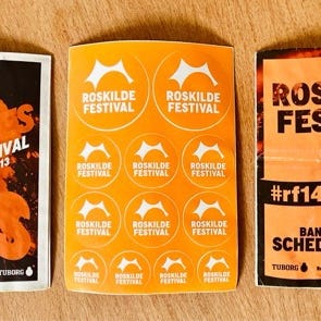 Broderet tekst: ROSKILDE Music changes us. Desuden Orange stage logo på siden.