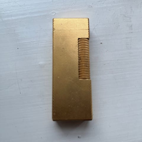 Metal lighter with enamel decoration on the front. The design features a crest with the text 'Region VI Christiansminde'. The back is plain and shows signs of use. The lighter is hinged to open at the top, revealing the ignition mechanism.