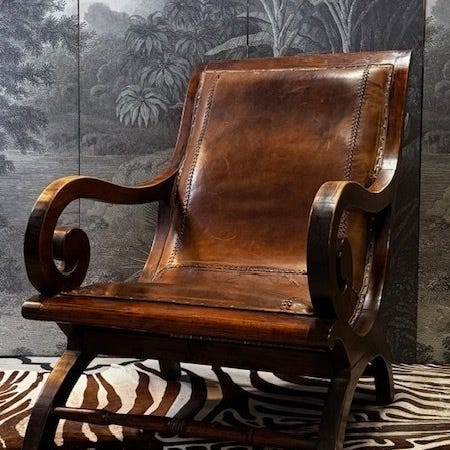 Disse klubstole er polstrede i ægte læder af høj kvalitet og har en varm brun nuance med en smuk naturlig patina. Læderet viser subtile variationer i farve og struktur, hvilket giver stolene en autentisk og indbydende karakter.