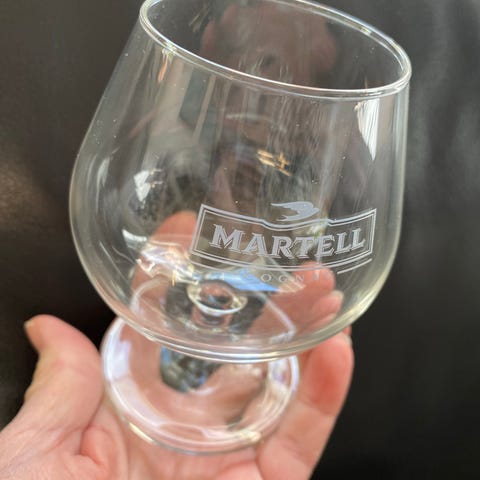 Champagneglas: højde 19 cm, øverste diameter 6 cm. Diameter fod 5,5 cm. Glasets vægt 156