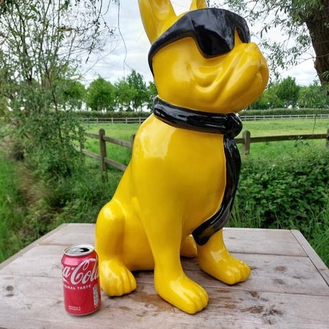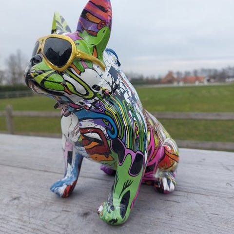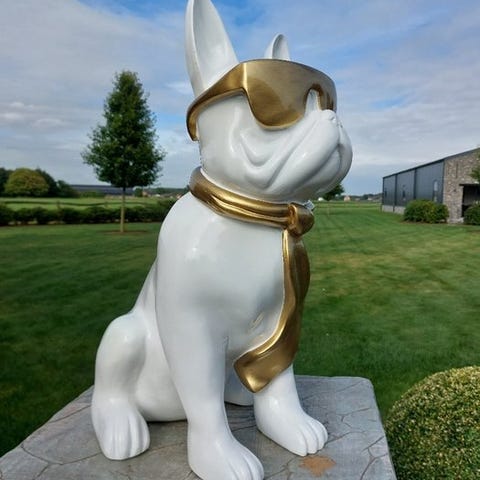 Stående tegneseriehund i hvidt, lavet af polyresin, håndmalet og uden underskrift, europæisk oprindelse, mål: 40 cm høj, 40 cm dyb og 20 cm bred, i fremragende stand. Klik på den blå "gå til varen" knap, for at købe eller byde på denne vare. Den samlede pris vil blive vist inden du afgiver dit bud.