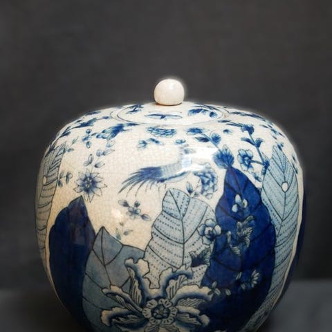 En stor tung keramikvaske med låg, fremstillet i Storbritannien af Pearson & Co Whattington Moore, nummer 35, dateret 1970–1980, højde 39 cm, bunddiameter 24 cm, åbning 18 cm, vægt 12 kg, i god stand med mindre tegn på ældning, håndlavet i hvidt ler. Klik på den blå "gå til varen" knap, for at købe eller byde på denne vare. Den samlede pris vil blive vist inden du afgiver dit bud.