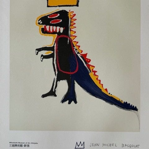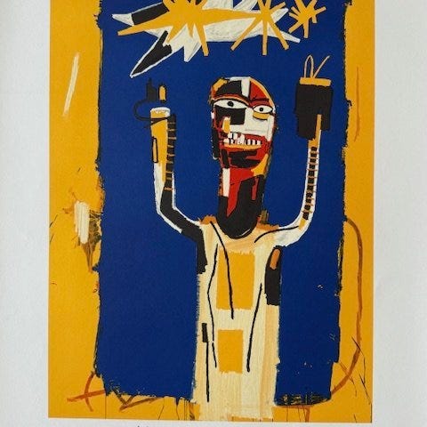 Printed on luxurious 300gsm Monte Carlo fine art watercolour paper—crafted by St Cuthbert's Mill, a paper mill with over 300 years of history—this poster is preserved in very good, unframed condition. The artwork's bold colors and dynamic energy reflect Basquiat’s unparalleled ability to blend street art with cultural commentary, making it a timeless piece for any collection.