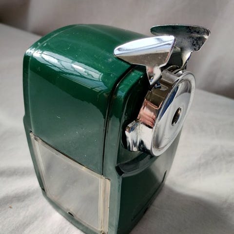 Dahle 77 blyantspidser af metal, krom og plastik i god brugt stand med mindre tegn på ældning og pletter, produceret i Tyskland i 1950’erne–1960’erne; mål 8 cm bred, 12 cm høj, 8 cm dyb; vægt 1 kg. Klik på den blå "gå til varen" knap, for at købe eller byde på denne vare. Den samlede pris vil blive vist inden du afgiver dit bud.