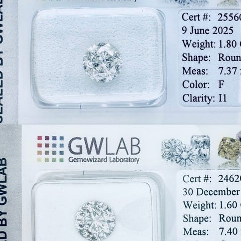 2 pcs Diamant (Natur) - 2.01 ct - Rund - G, H - SI1 - International Gemologic...