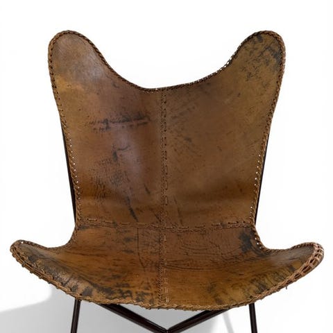 Vintage lænestol i brunt kalveskind med træramme, mål 101,5 cm højt, 81,5 cm bredt, 96,5 cm dybt, siddedybde 49 cm, i god stand med normale brugsspor. Klik på den blå "gå til varen" knap, for at købe eller byde på denne vare. Den samlede pris vil blive vist inden du afgiver dit bud.