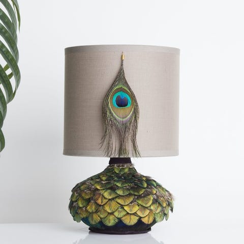 Lampe - Fugl - Messing, Tekstil - Fugl