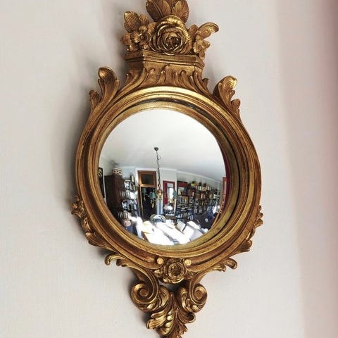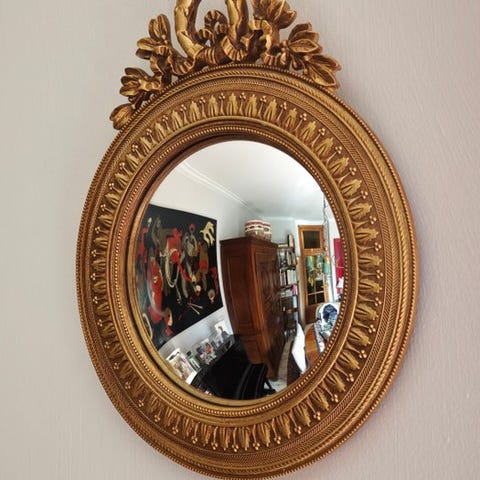 Tags: Spejl, Guld, Konveks, Dekor, Elegant, Luksus, Stilfuld, Design, Rund, Ramme, Kunstnerisk, Vintage,