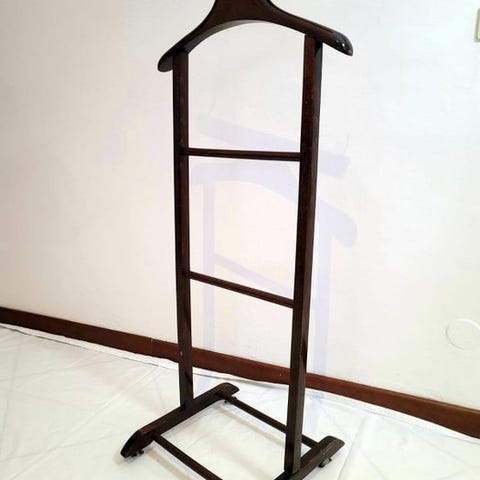 Elegant vintage træ-valet-stativ i træ, fremstillet i Italien, der forener æstetik og funktionalitet.