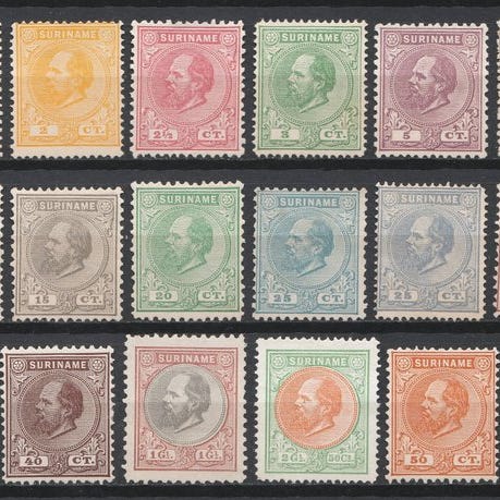 Suriname, Koningin Wilhelmina hjørnepar NVPH 229-243 med Specimen-optryk og perforationshul, fra 1945, original gum. Klik på den blå "gå til varen" knap, for at købe eller byde på denne vare. Den samlede pris vil blive vist inden du afgiver dit bud.