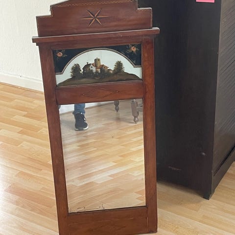 trumeau-spejl, et vægspiegel, der kendetegnes ved et maleri eller relief øverst på spejlets glas.