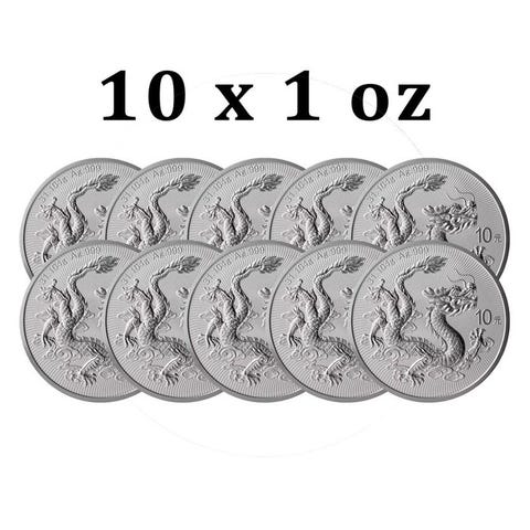 Kina. 10 Yuan 5 x 2025 1 oz ¥10 CNY Chinese Silver Dragon Coin BU